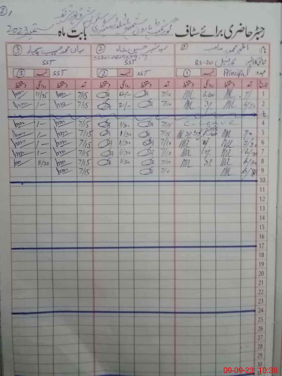 | CNIC | Full Name | Designation | R/C | Absence during last cal. month |