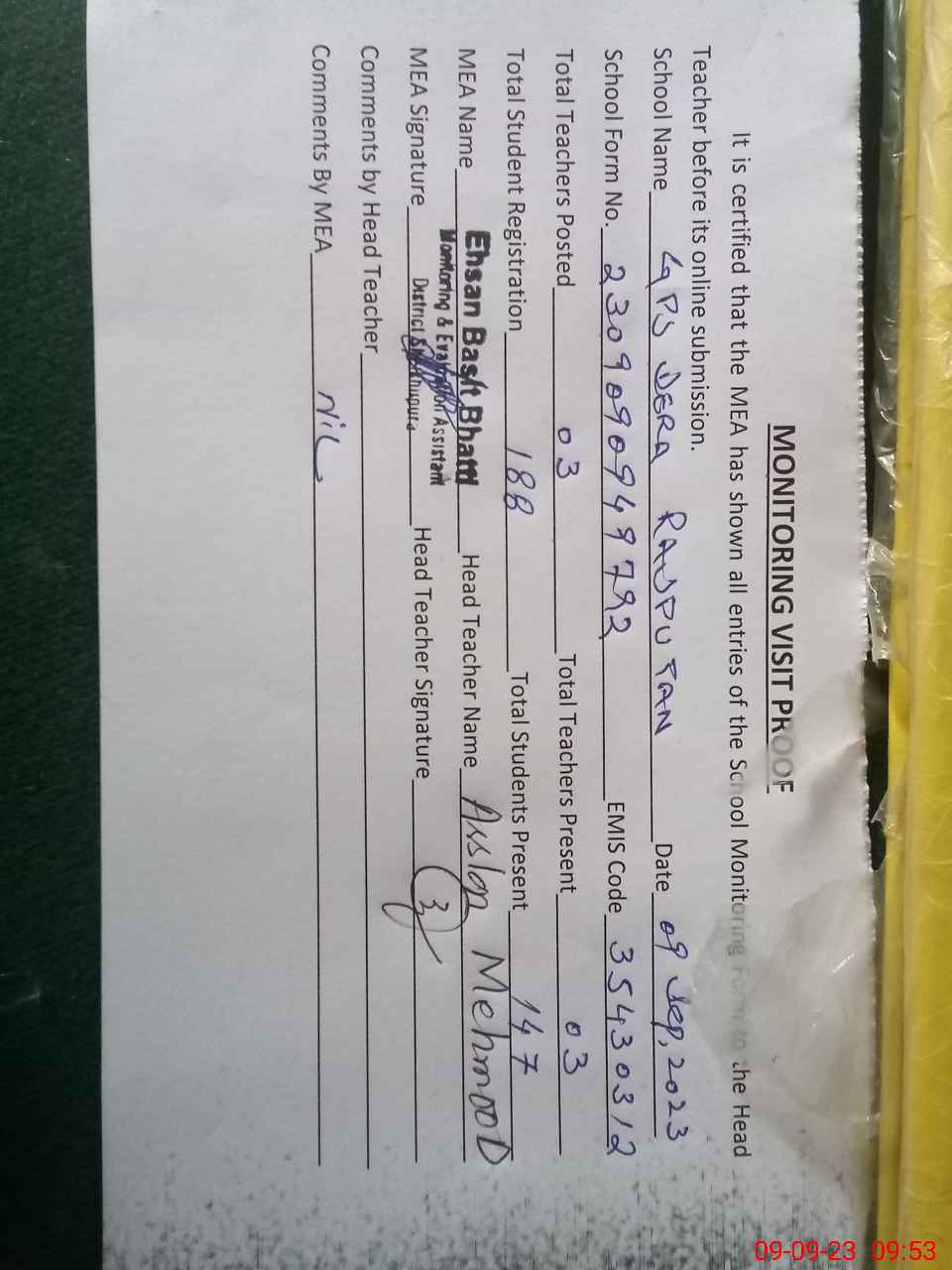 | EMIS Code: 35430312 | Name of School: GPS DERA RAJPUTAN | |||
