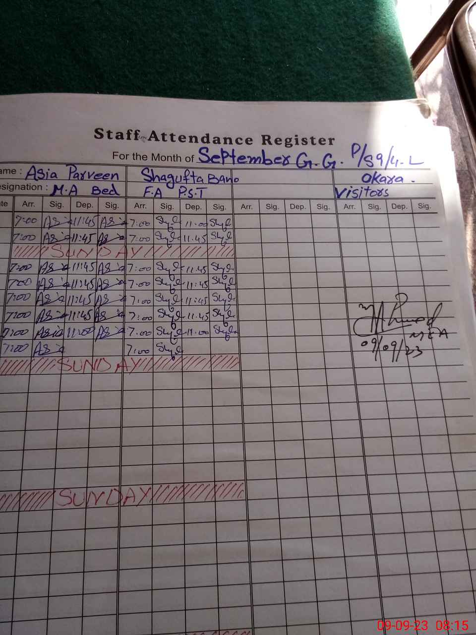 | Name: AS**** PA**** Designation: (School Headmaster's/Headmistress's) PST Phone/Cell Number: 03**** |