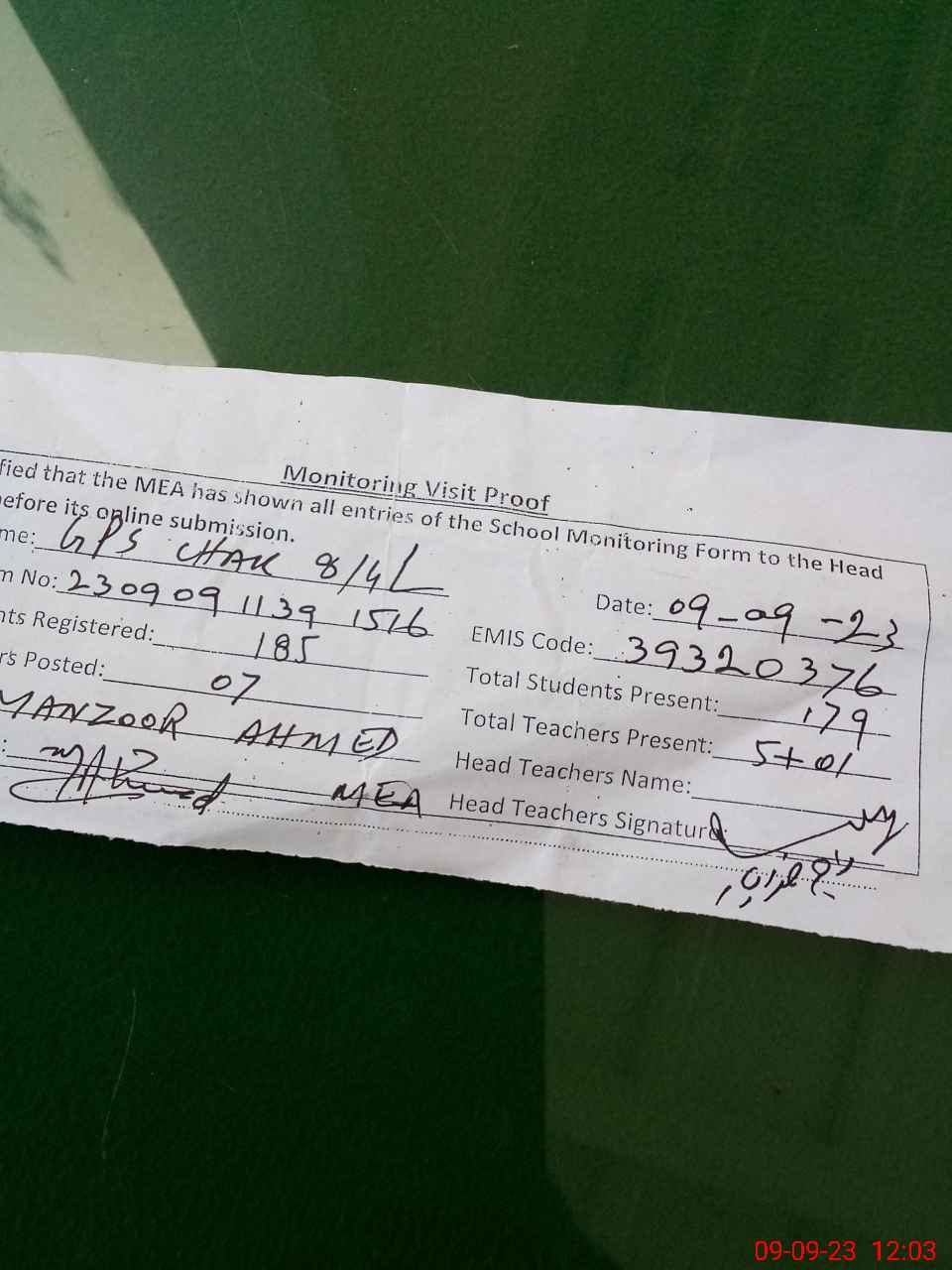 | EMIS Code: 39320376 | Name of School: GPS CHAK 8/4-L | |||