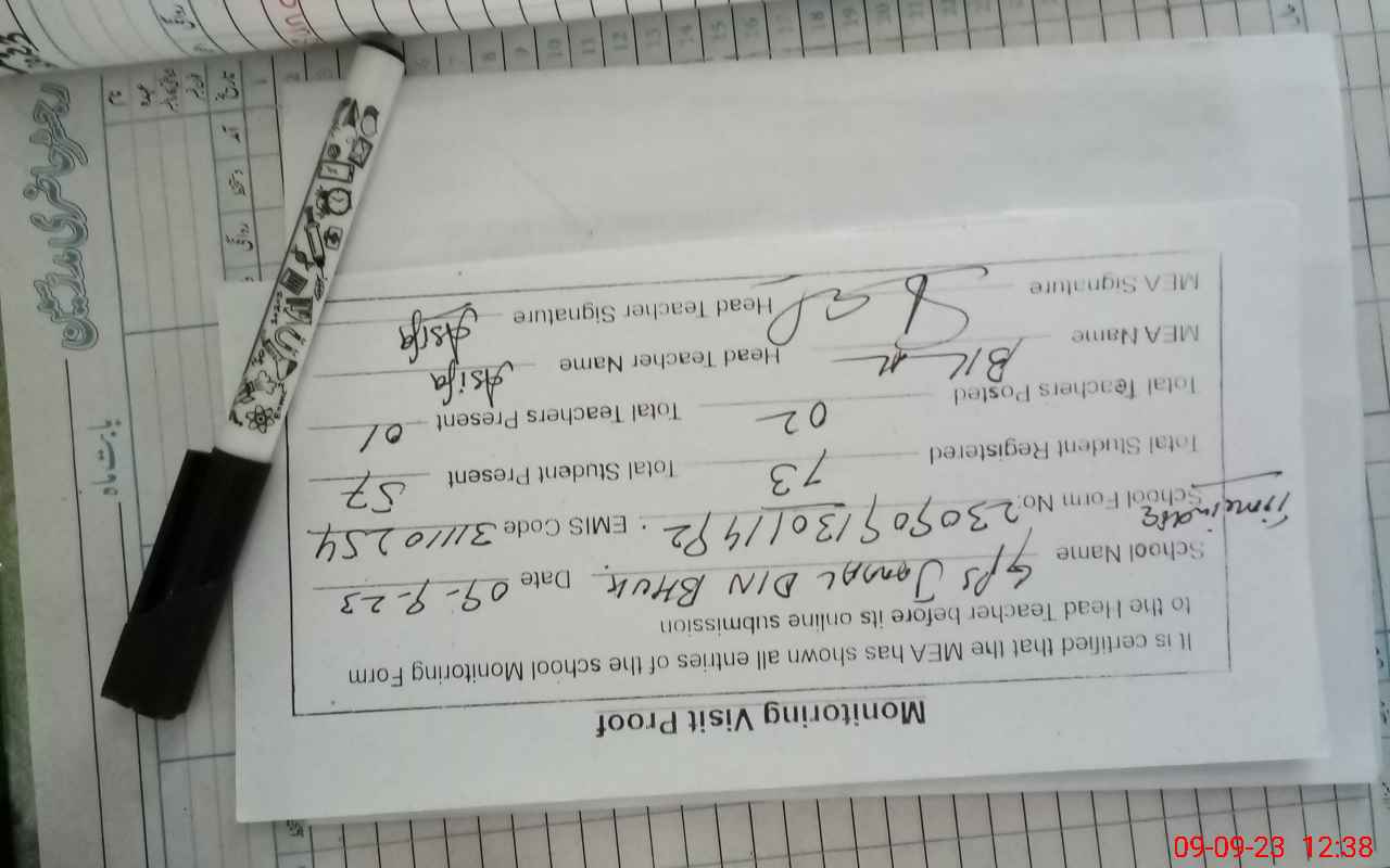 | EMIS Code: 31110254 | Name of School: GPS JAMAL DIN BHUK | |||