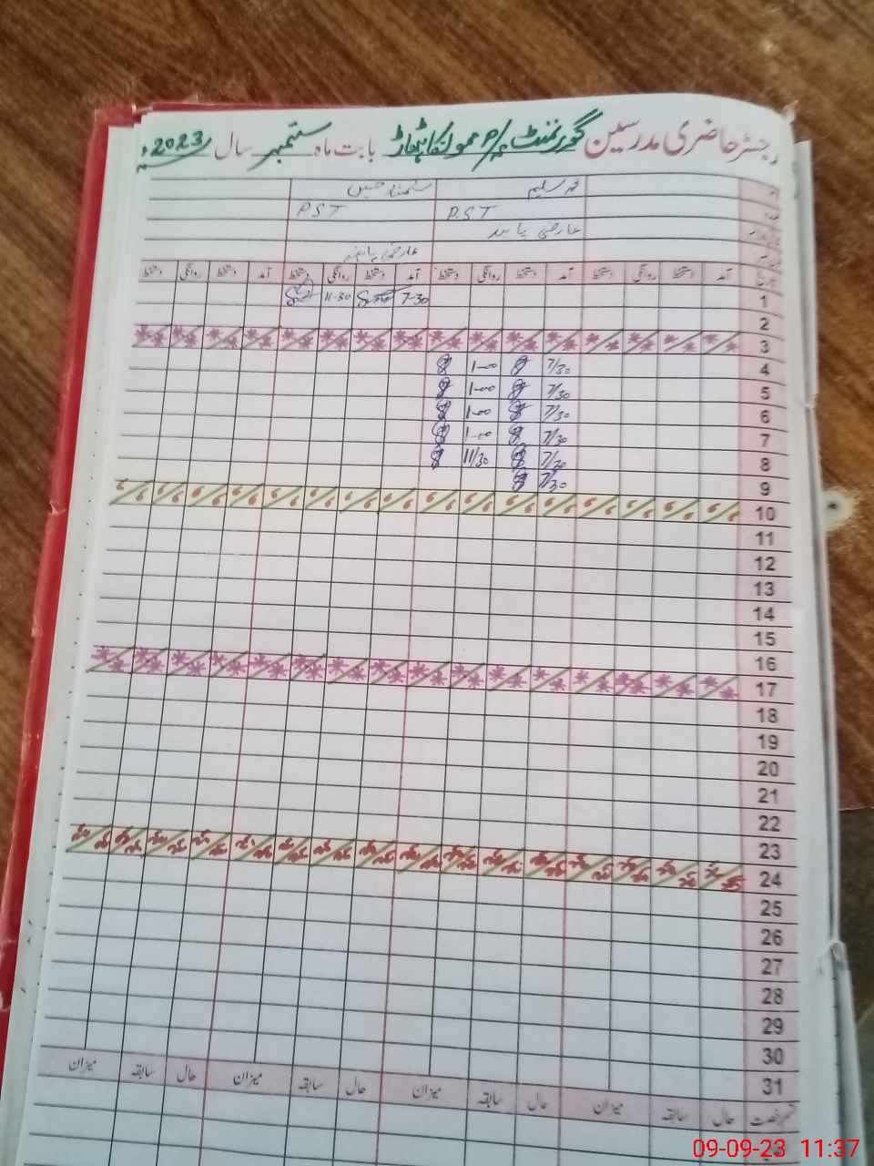 | Name: MU**** RA**** Designation: (School Headmaster's/Headmistress's) PST Phone/Cell Number: 03**** |