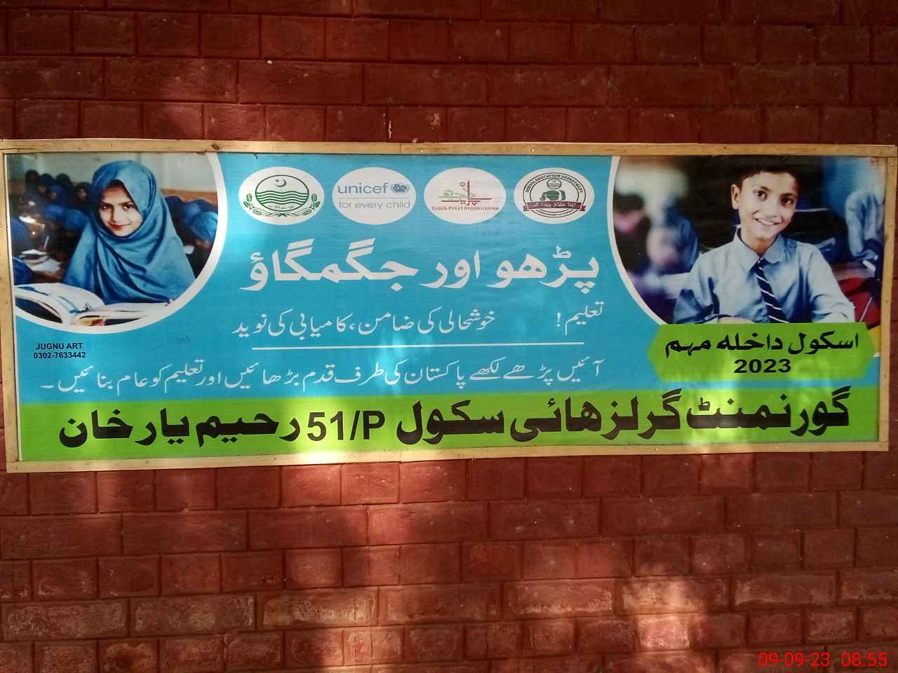 | EMIS Code: 31330052 | Name of School: GGHS CHAK NO. 51/P R.Y.KHAN | |||