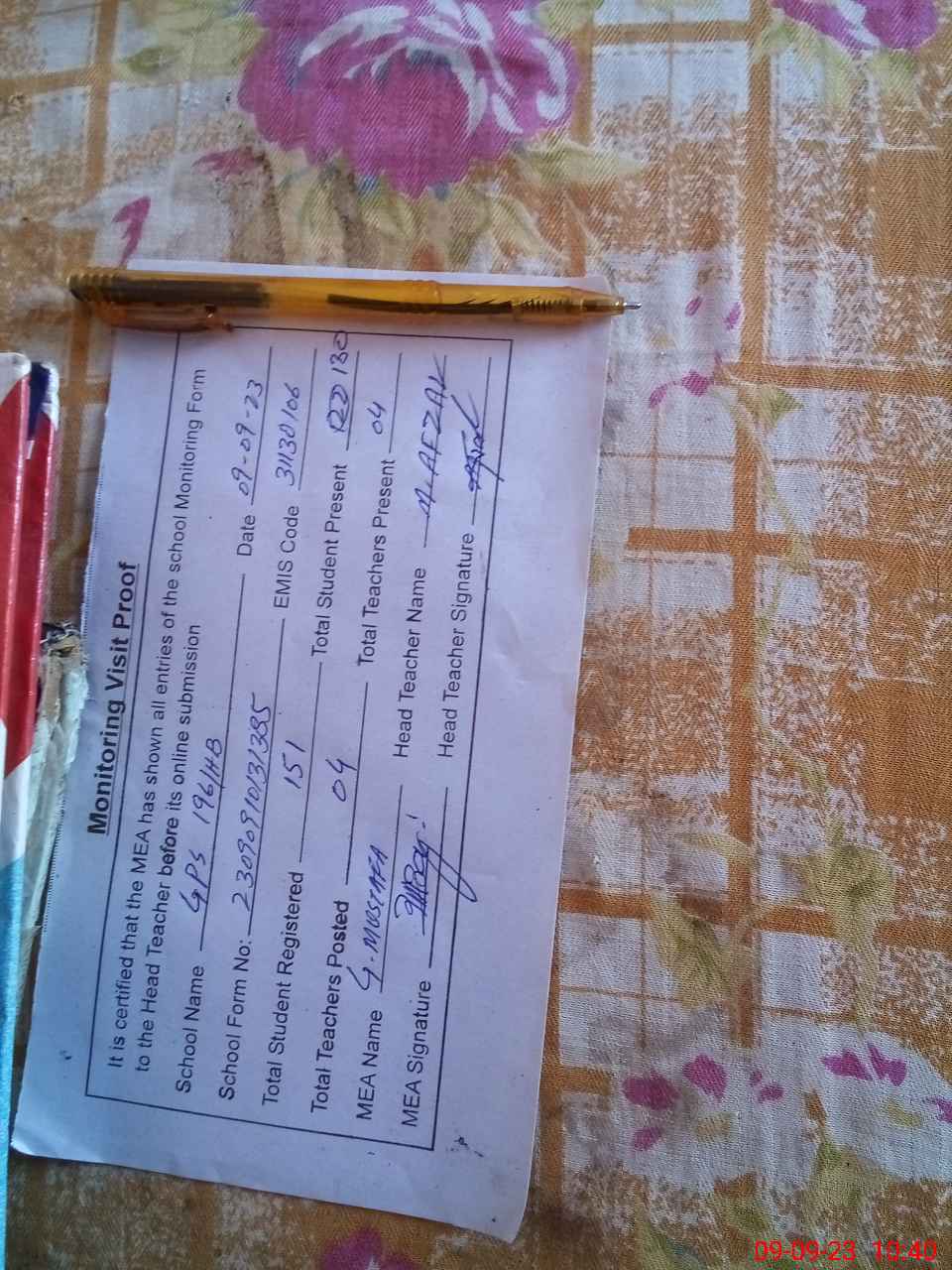 | EMIS Code: 31130106 | Name of School: GPS CHAK 196/HB | |||