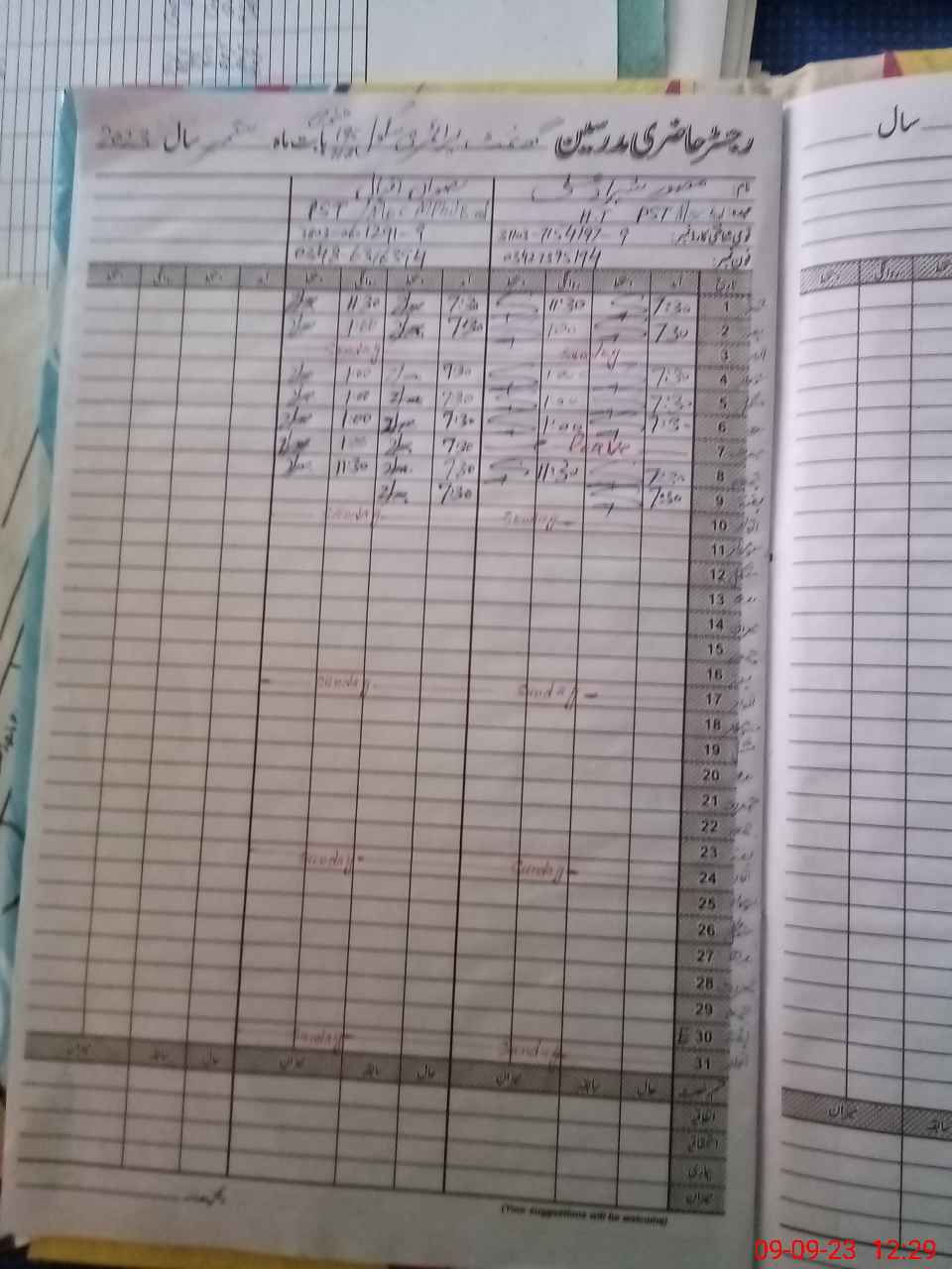 | CNIC | Full Name | Designation | R/C | Absence During Last Calender Month |