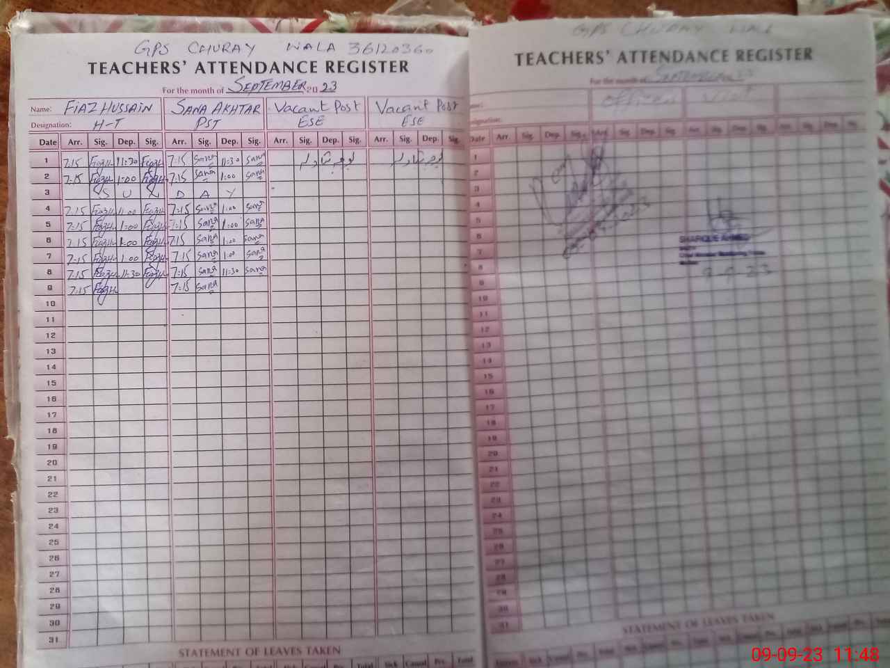 | Name: FI**** HU**** Designation: (School Headmaster's/Headmistress's) PST Phone/Cell Number: 03**** |