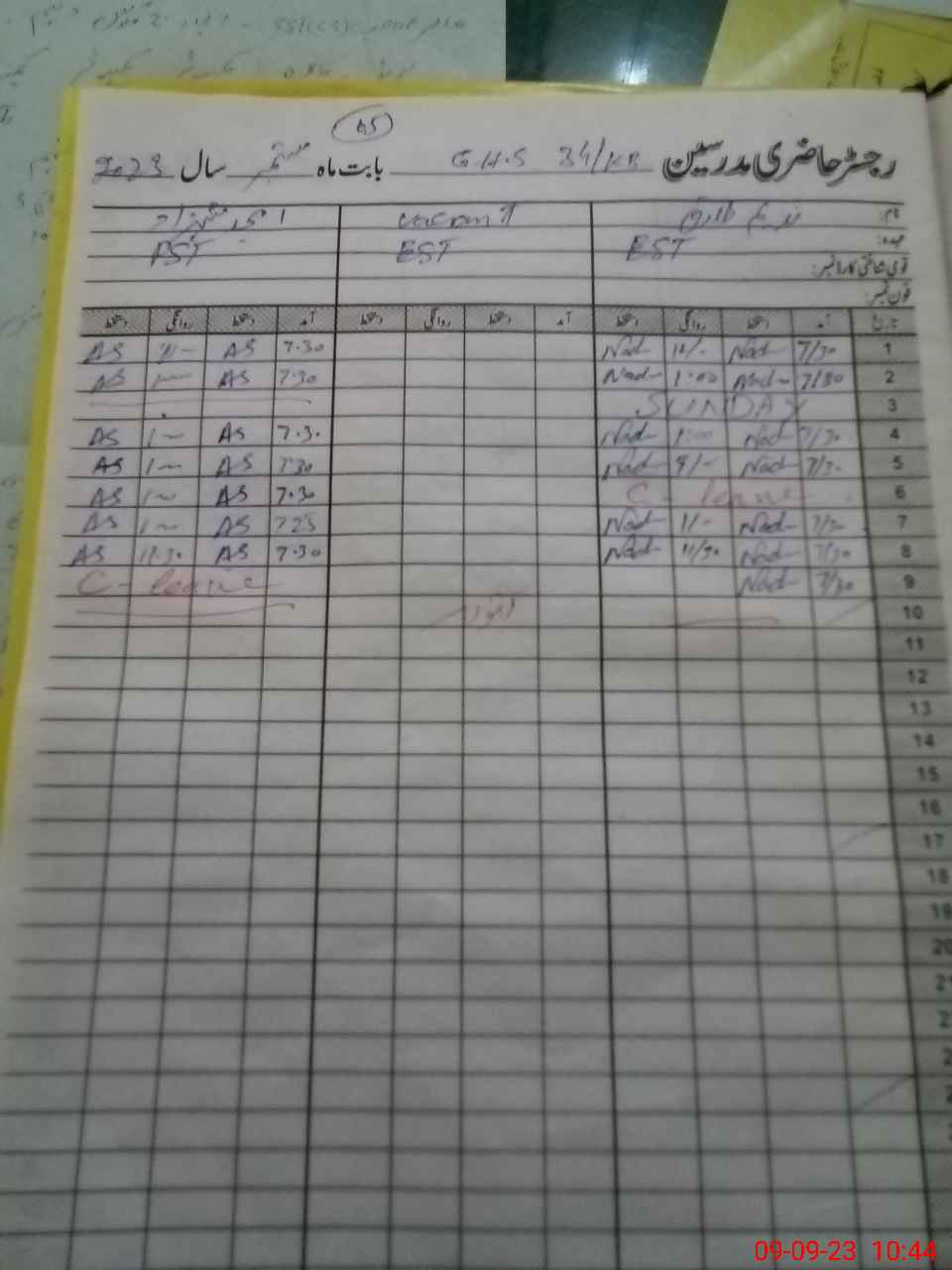 | CNIC | Full Name | Designation | R/C | Absence During Last Calender Month |