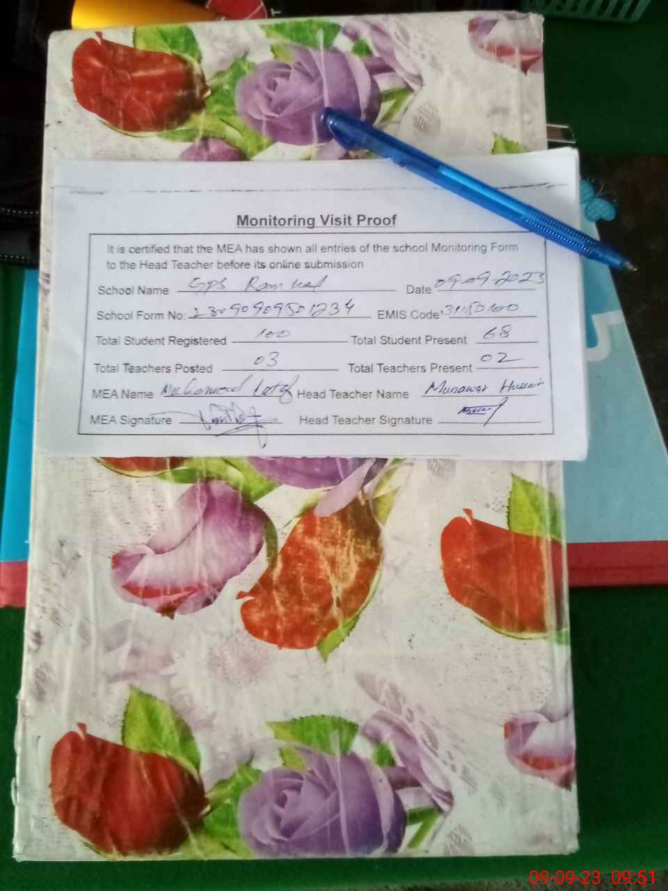 | EMIS Code: 31150100 | Name of School: GPS RAMKOT | |||