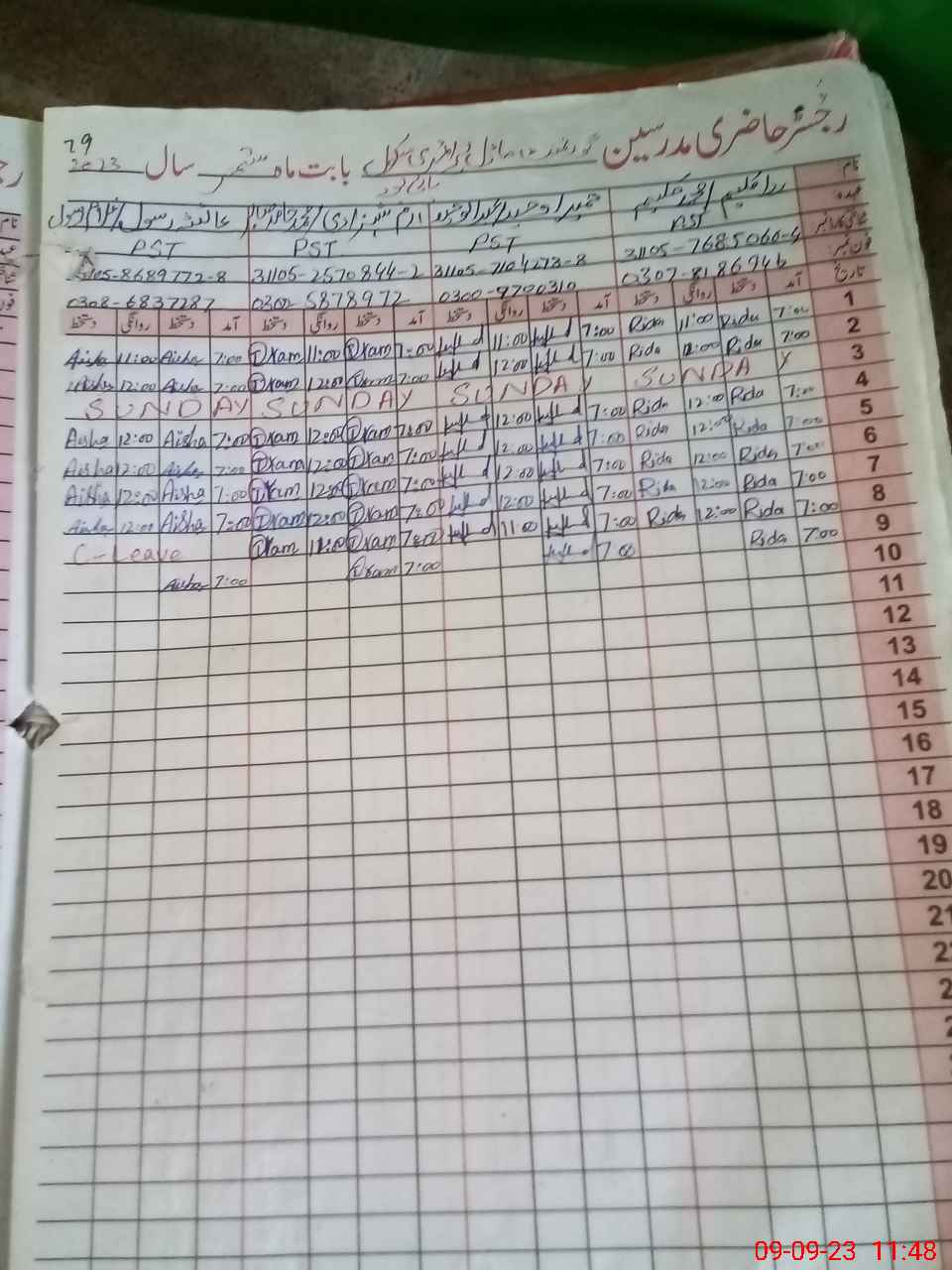 | Name: Ay**** Ra**** Designation: (School Headmaster's/Headmistress's) PST Phone/Cell Number: 03**** |