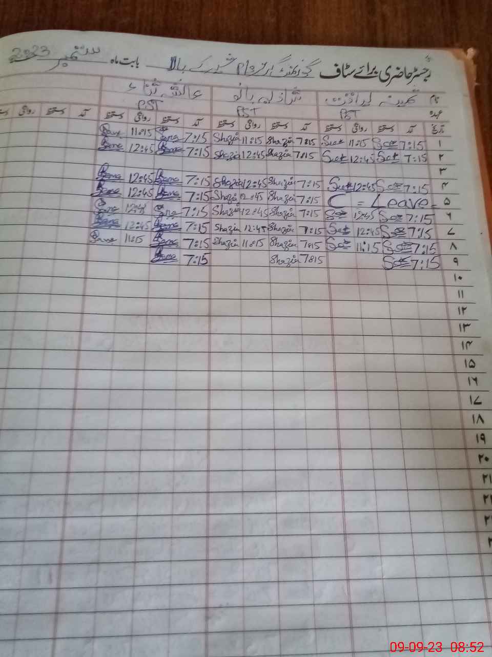 | CNIC | Full Name | Designation | R/C | Absence During Last Calender Month |