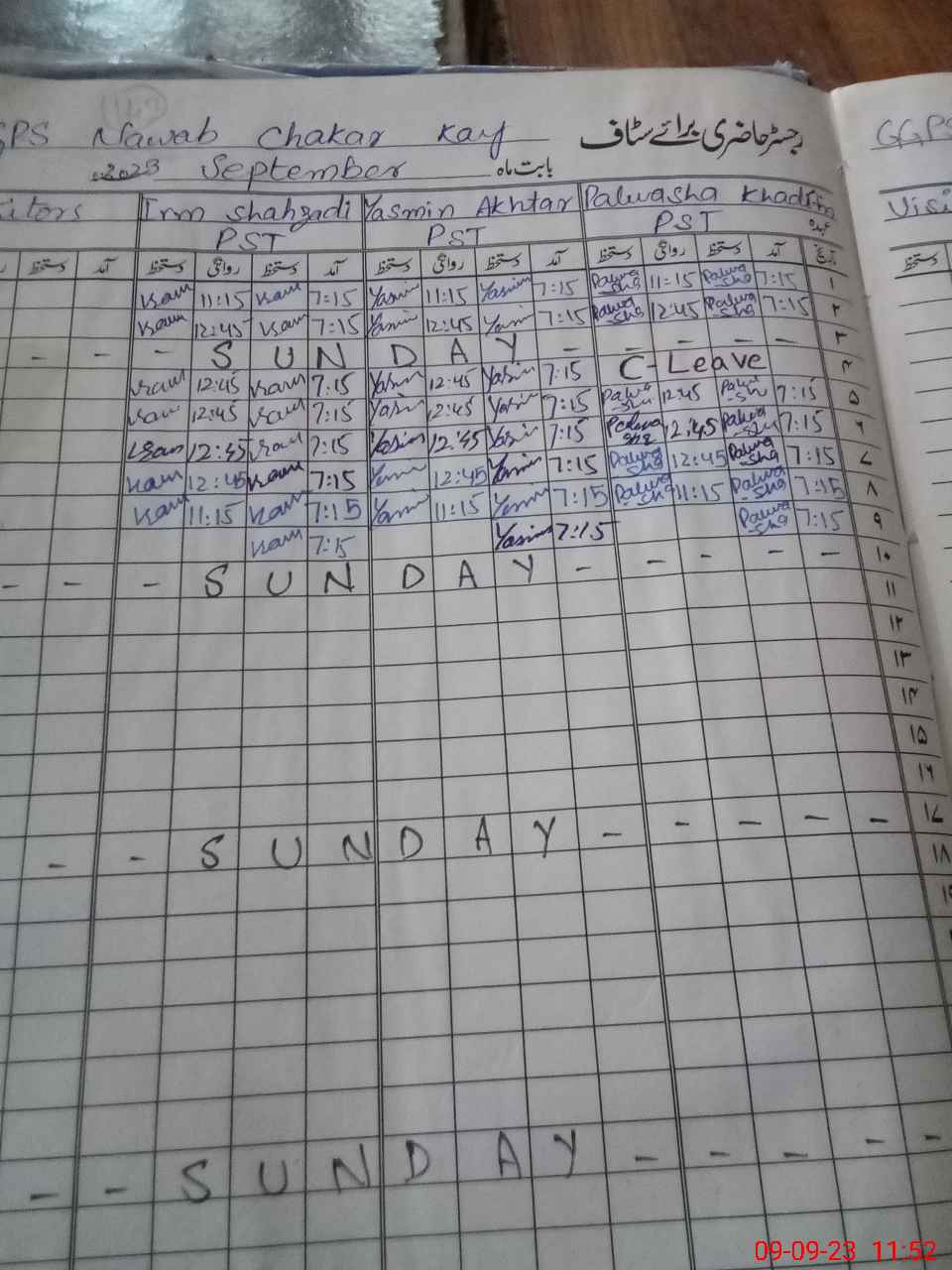 | Leave | Duty | Absent | Maternity | Medical | Ex- Pak |
