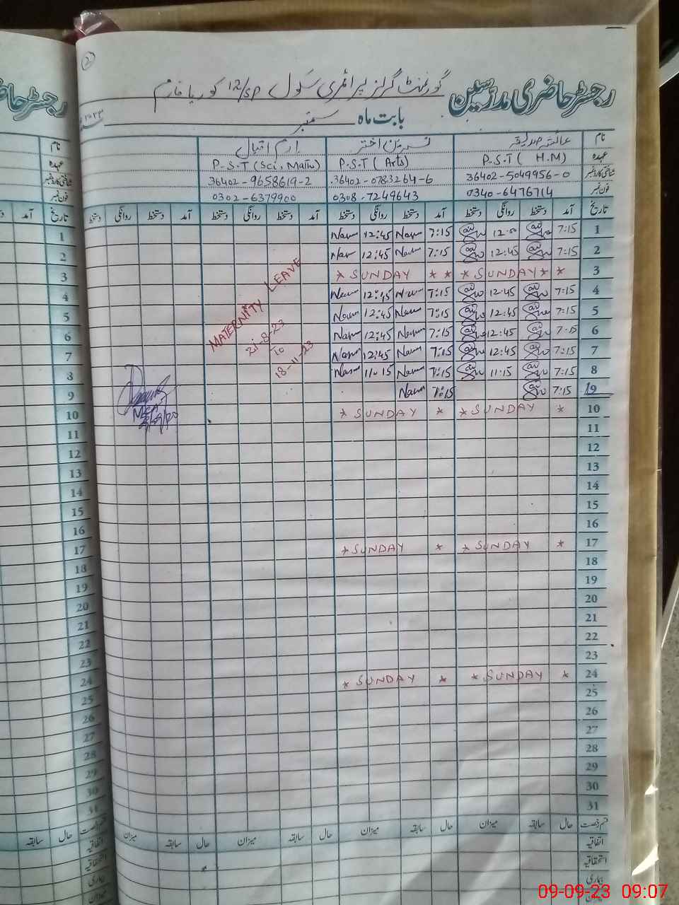 | Name: AI**** SA**** Designation: (School Headmaster's/Headmistress's) PST Phone/Cell Number: 03**** |