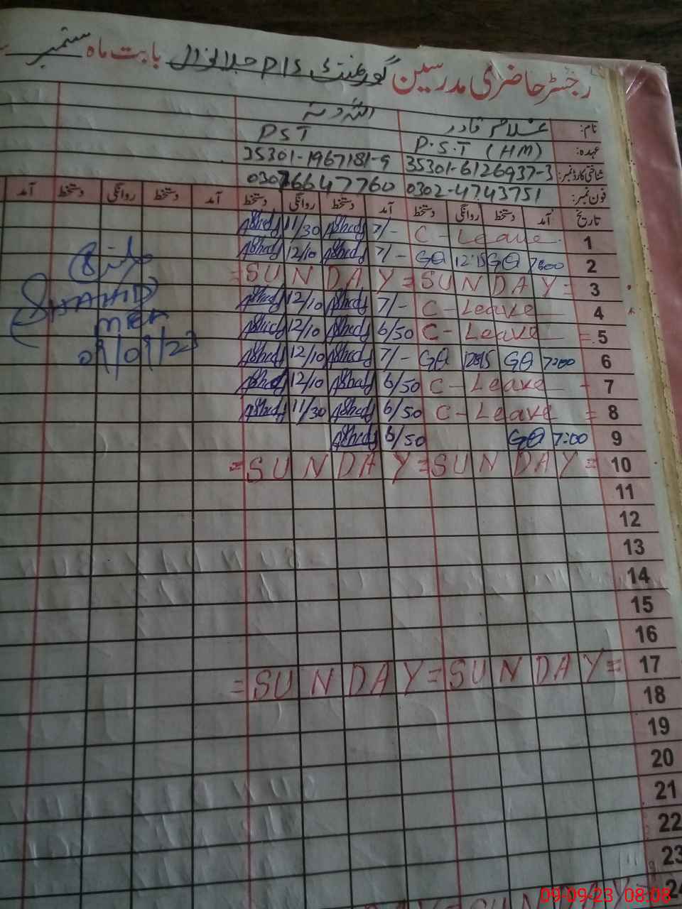 | Name: Gh**** Qa**** Designation: (School Headmaster's/Headmistress's) PST Phone/Cell Number: 03**** |