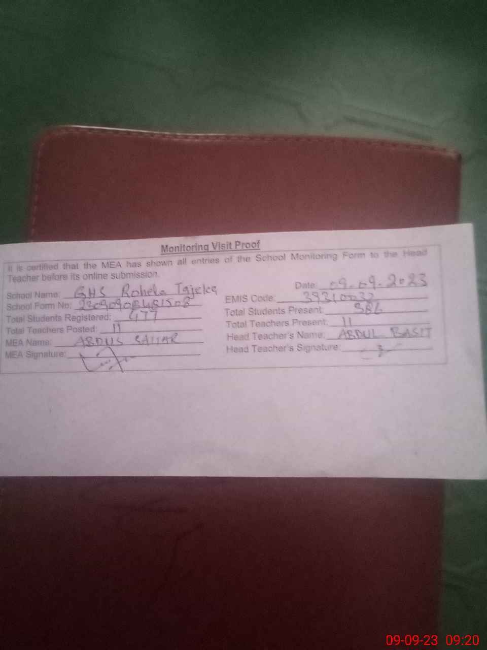 | EMIS Code: 39310032 | Name of School: GHS ROHELA TAJEKA | |||