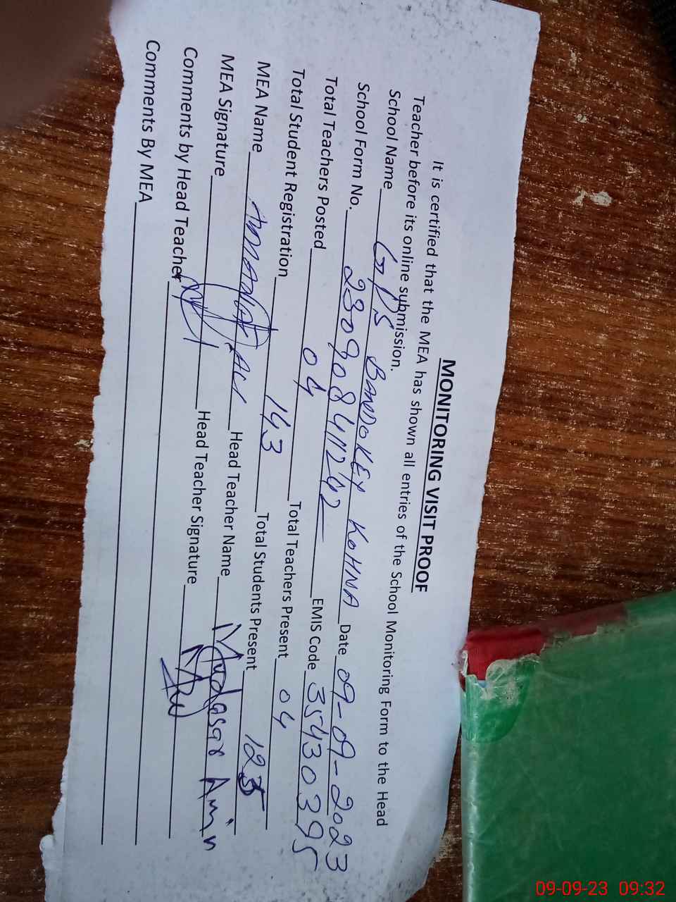 | EMIS Code: 35430395 | Name of School: GPS BANDO KEY KOHNA | |||