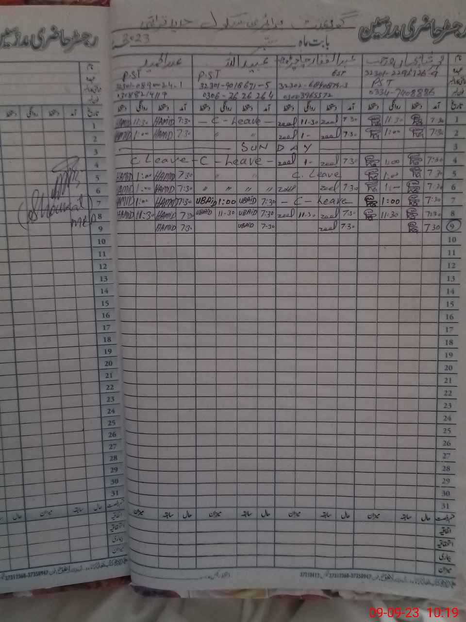 | CNIC | Full Name | Designation | R/C | Absence During Last Calender Month |