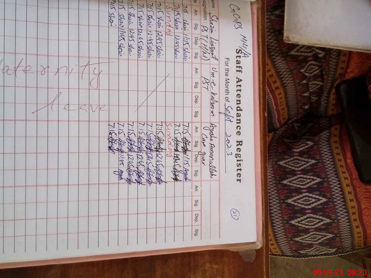 | Name: SH**** LI**** Designation: (School Headmaster's/Headmistress's) PST Phone/Cell Number: 03**** |