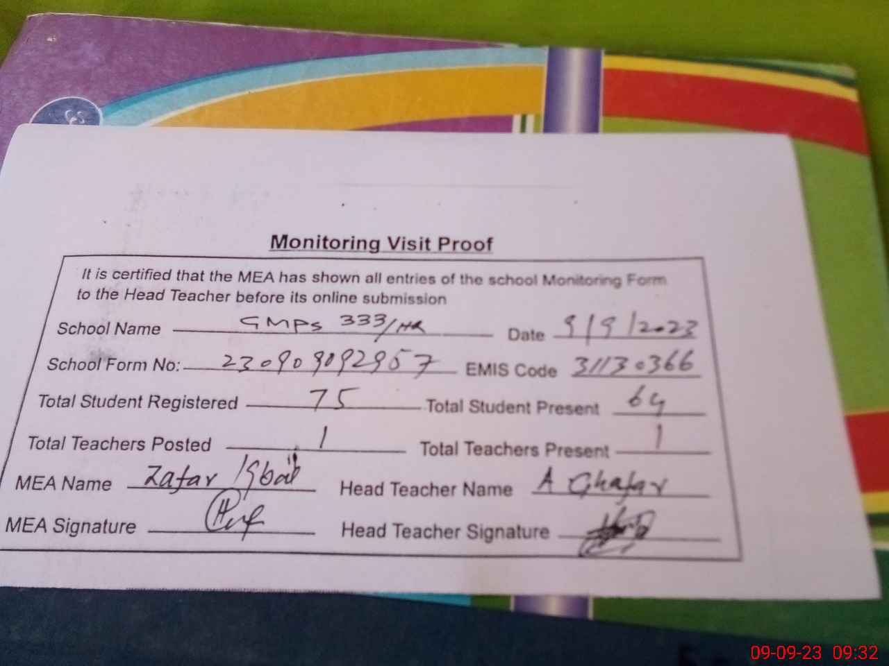 | EMIS Code: 31130366 | Name of School: GMPS CHAK NO 333 HR | |||