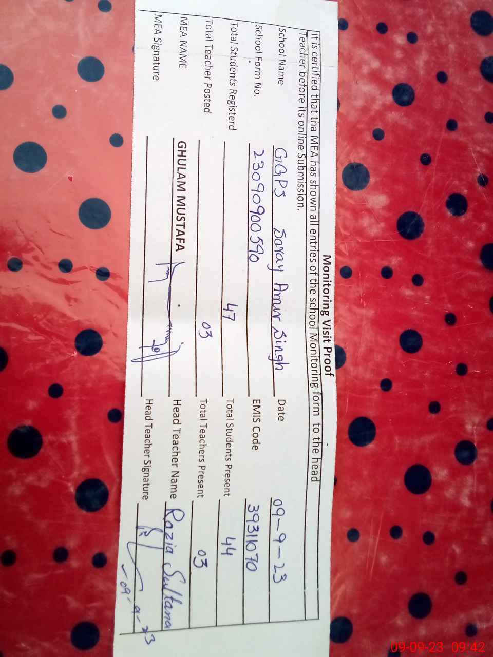 | EMIS Code: 39311070 | Name of School: GGPS SARAY AMIR SINGH | |||