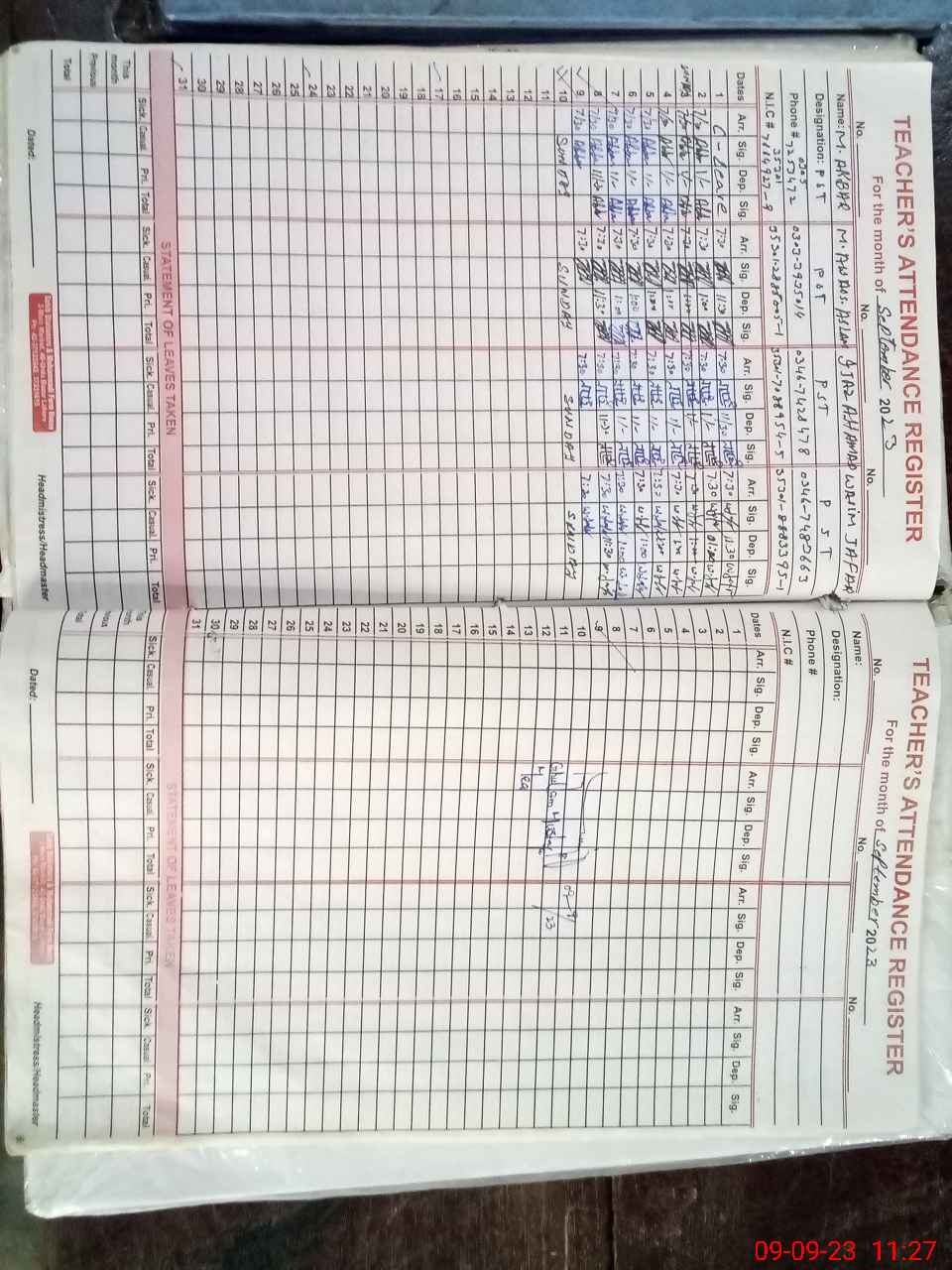 | Name: Mu**** Ak**** Designation: (School Headmaster's/Headmistress's) PTC/ Phone/Cell Number: 03**** |