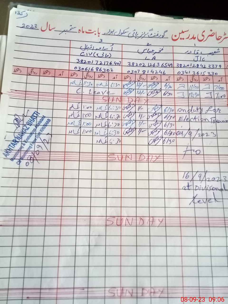 | Name: Qa**** Si**** Designation: (School Headmaster's/Headmistress's) Sst Phone/Cell Number: 03**** |