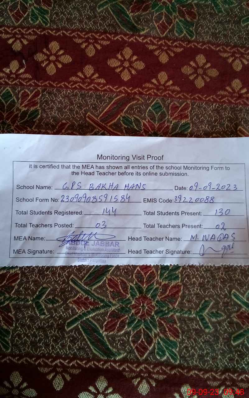 | EMIS Code: 39220088 | Name of School: GPS BAKHA HANS | |||