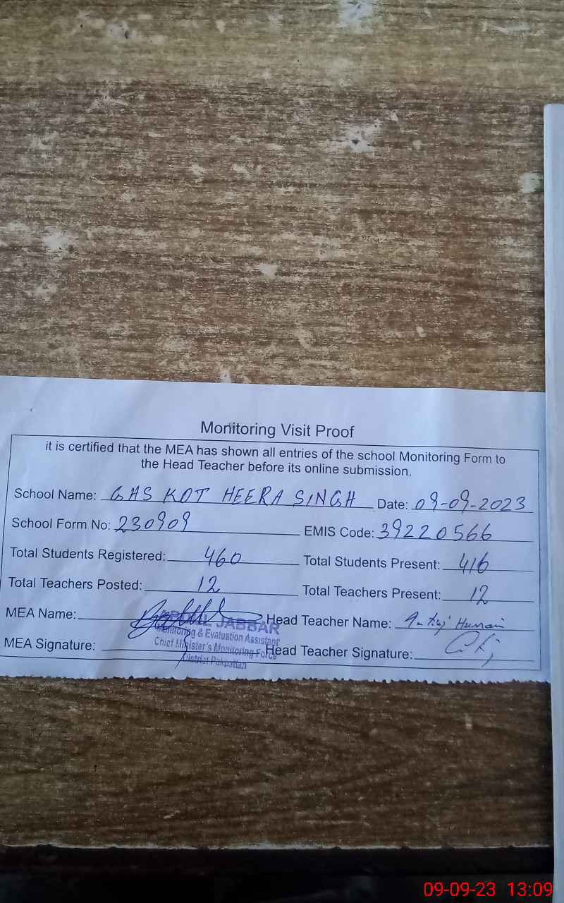 | EMIS Code: 39220566 | Name of School: GHS KOT HEERASINGH P.O SAME | |||