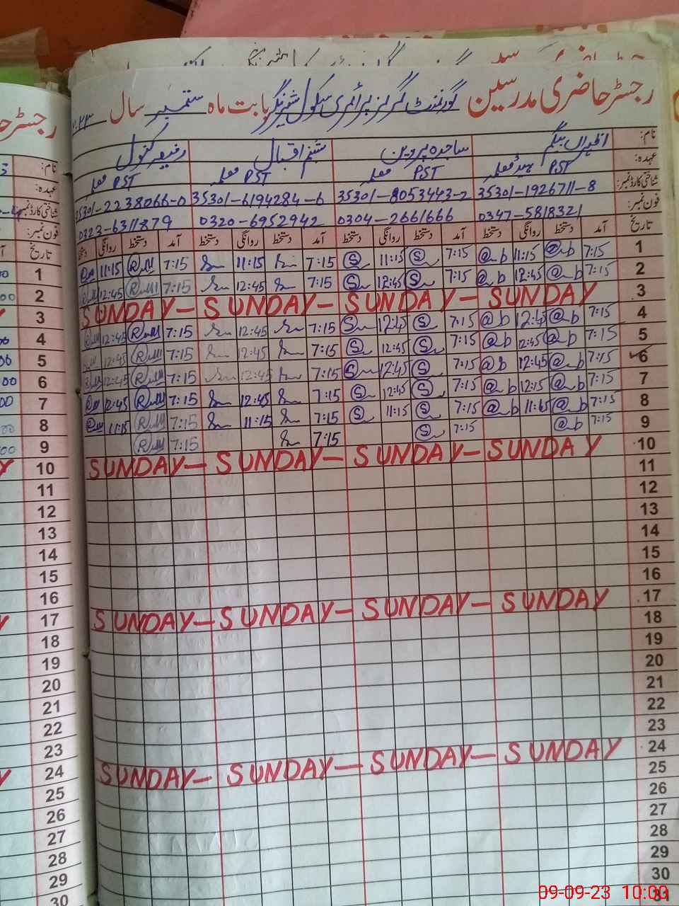 | Name: AZ**** Be**** Designation: (School Headmaster's/Headmistress's) PST Phone/Cell Number: 03**** |