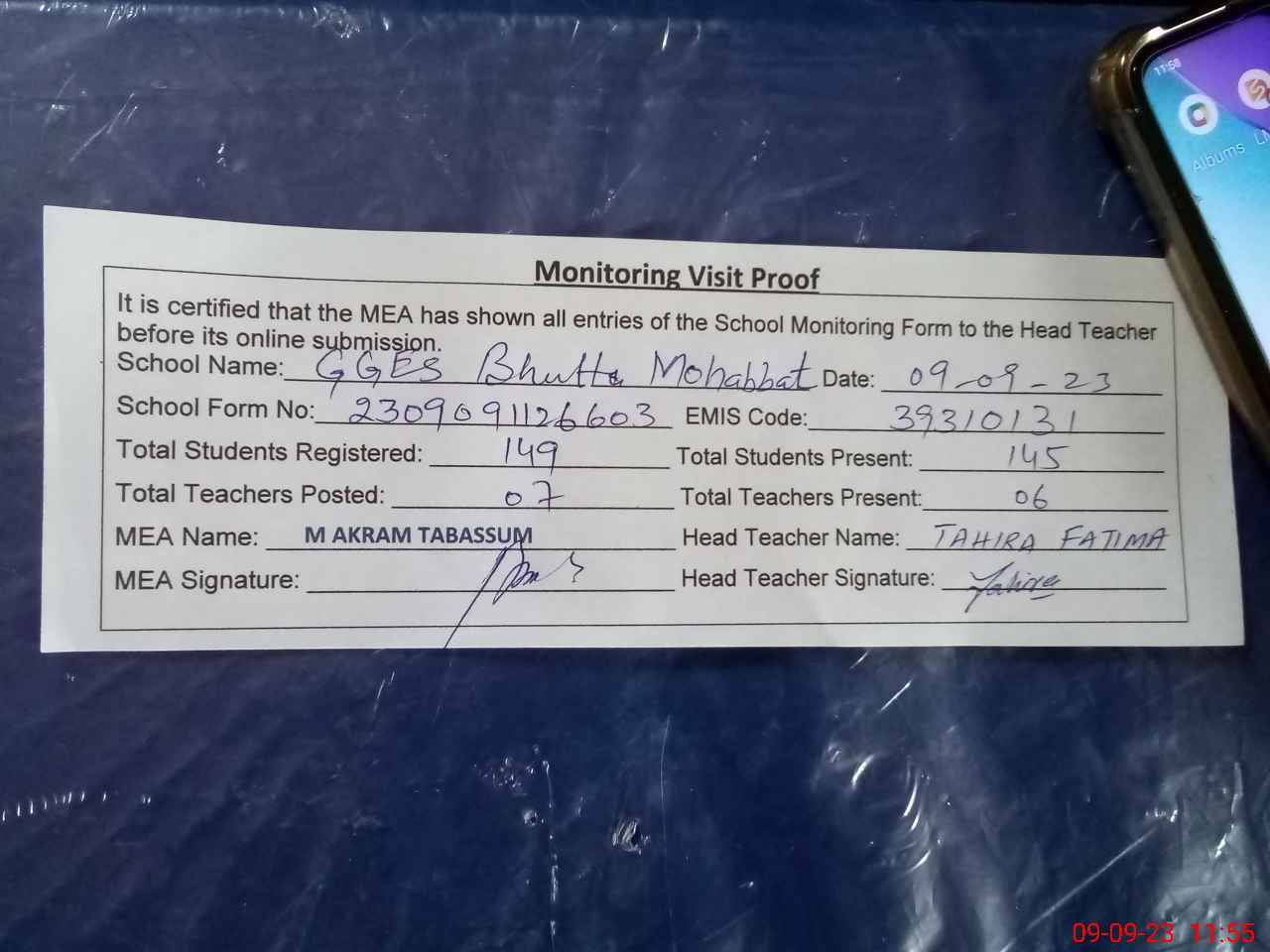| EMIS Code: 39310131 | Name of School: GGHS BHUTTA MOHABBAT | |||