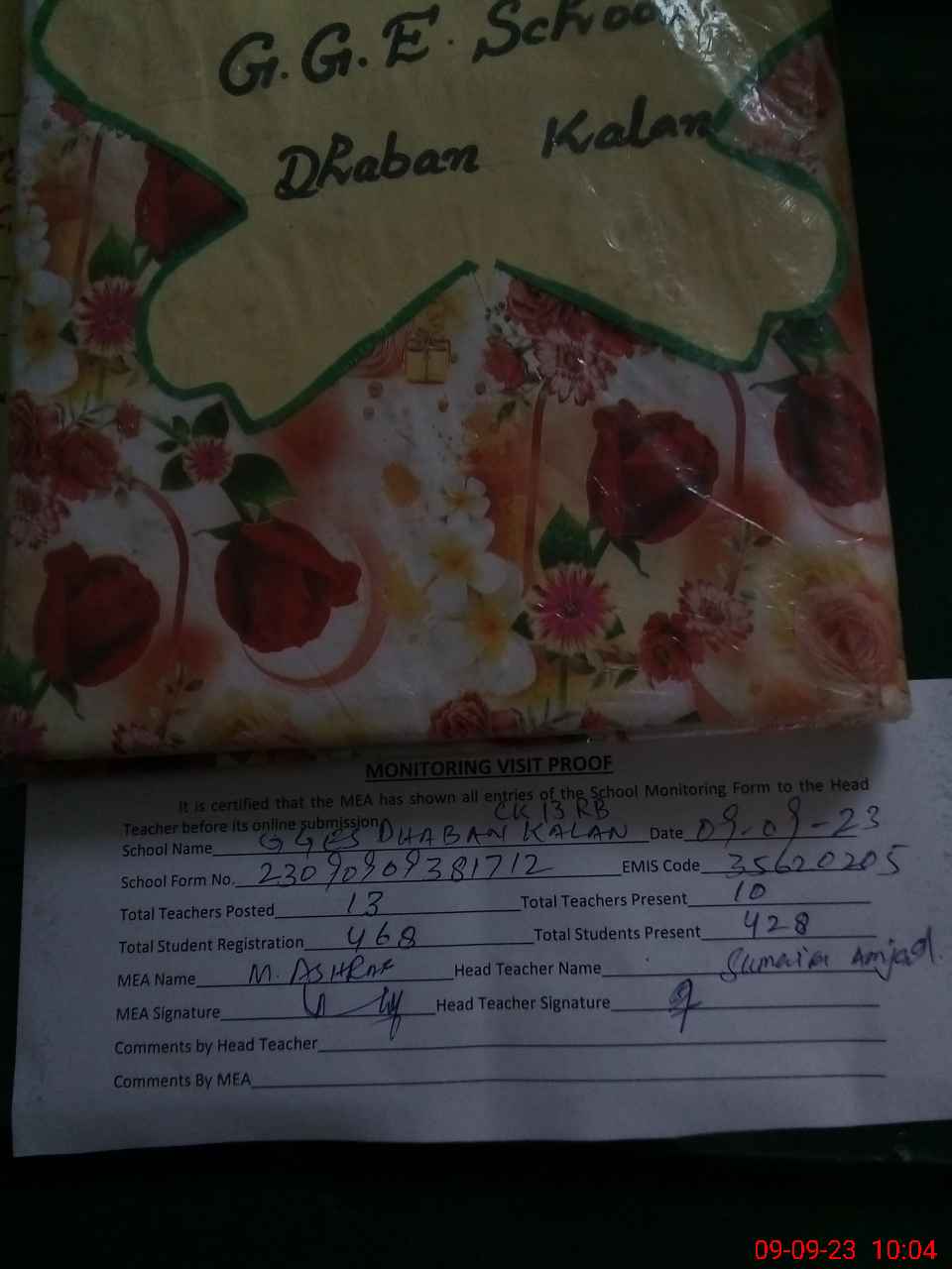 | EMIS Code: 35620205 | Name of School: GGES DHABAN KALAN | |||