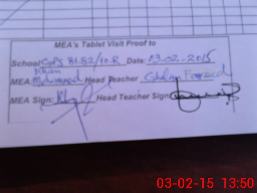 | Attendance Register | Head Teacher | MEA with School | Visit Proof |