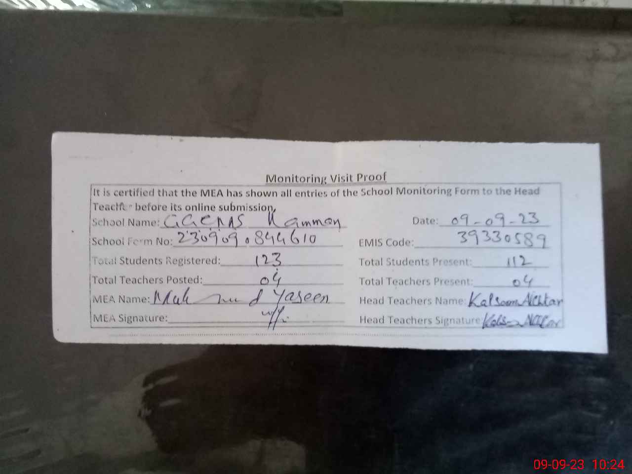 | Monitoring Date: 09-09-2023 | Start Time: 09-09-2023 08:44 AM | End Time: 09-09-2023 10:24 AM | Name of MEA: MU**** YA**** | |