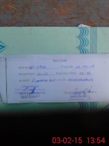 | Monitoring Date: 03-02-2015 | Start Time: 03-02-2015 01:05 PM | End Time: 03-02-2015 01:54 PM | Name of MEA: Ch**** Di**** | |