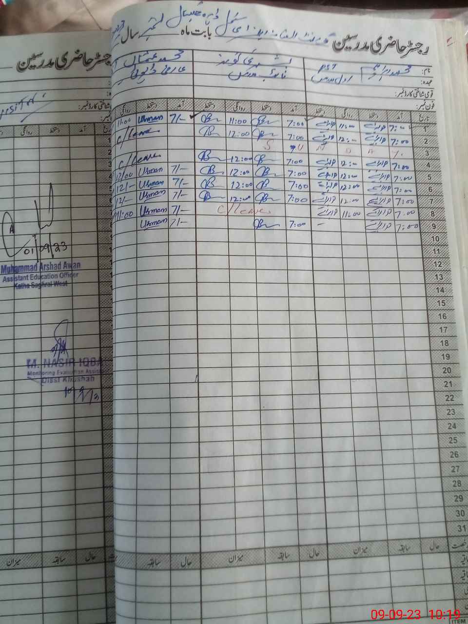 | Name: Mu**** Ja**** Designation: (School Headmaster's/Headmistress's) PST Phone/Cell Number: 03**** |