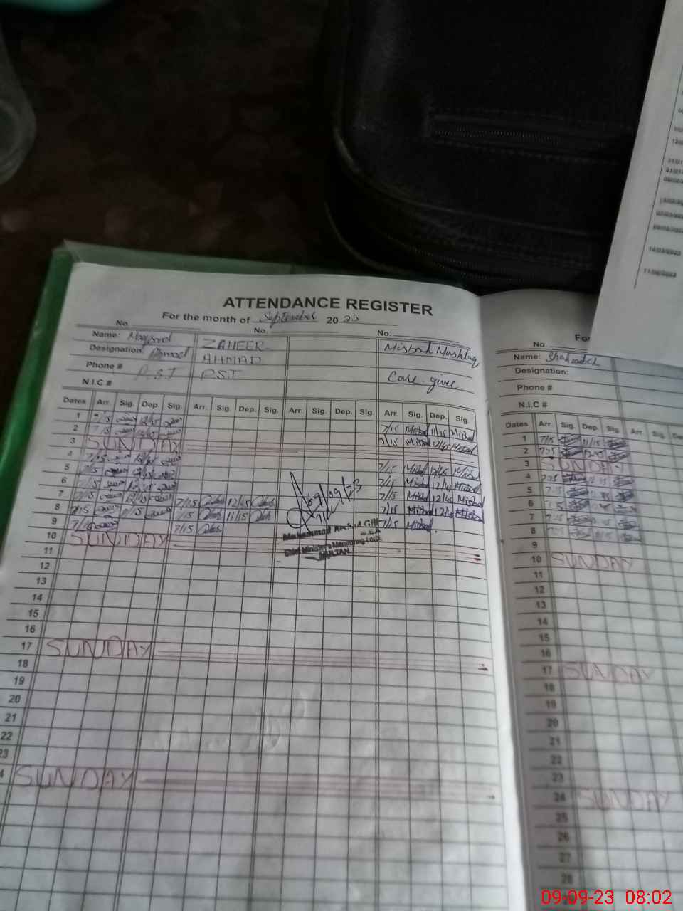 | CNIC | Full Name | Designation | R/C | Absence during last cal. month |