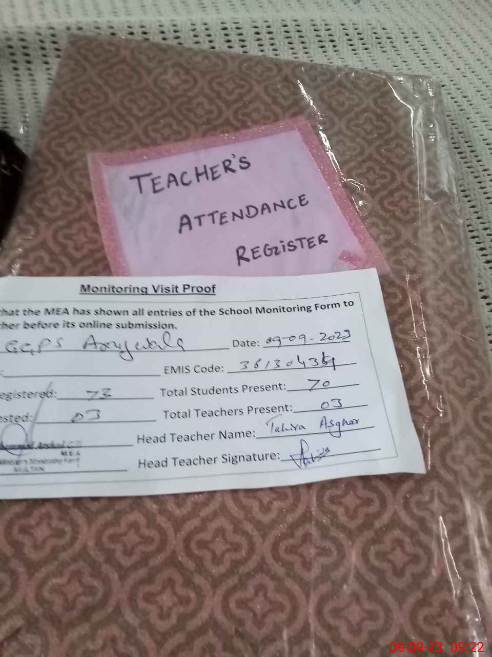 | Attendance Register | Head Teacher | MEA with School | Visit Proof |