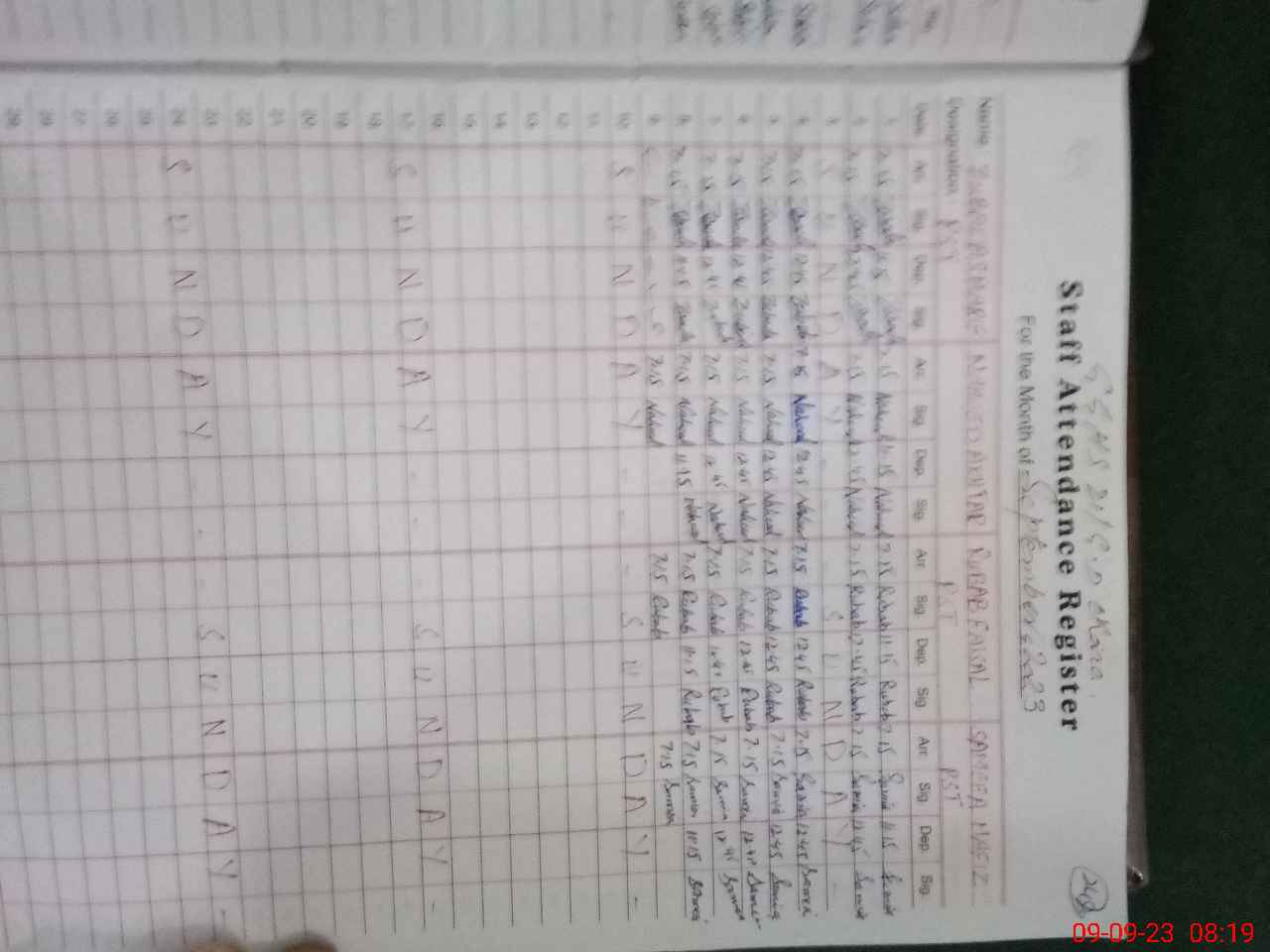| CNIC | Full Name | Designation | R/C | Absence During Last Calender Month |