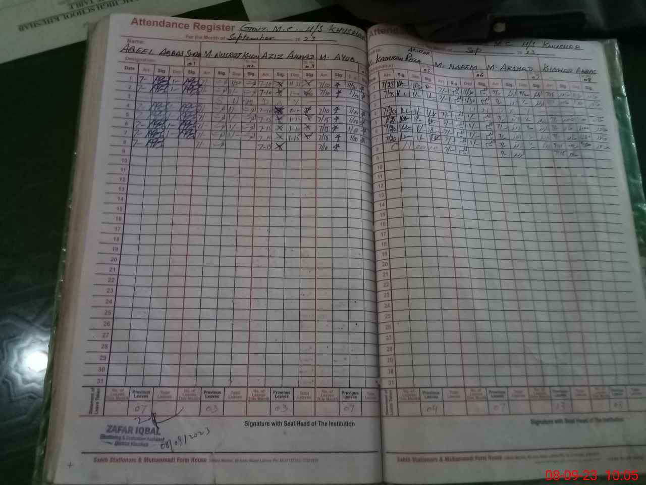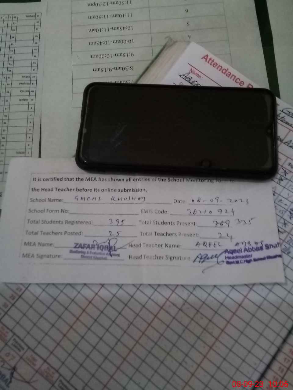 | Attendance Register | Head Teacher | MEA with School | Visit Proof |