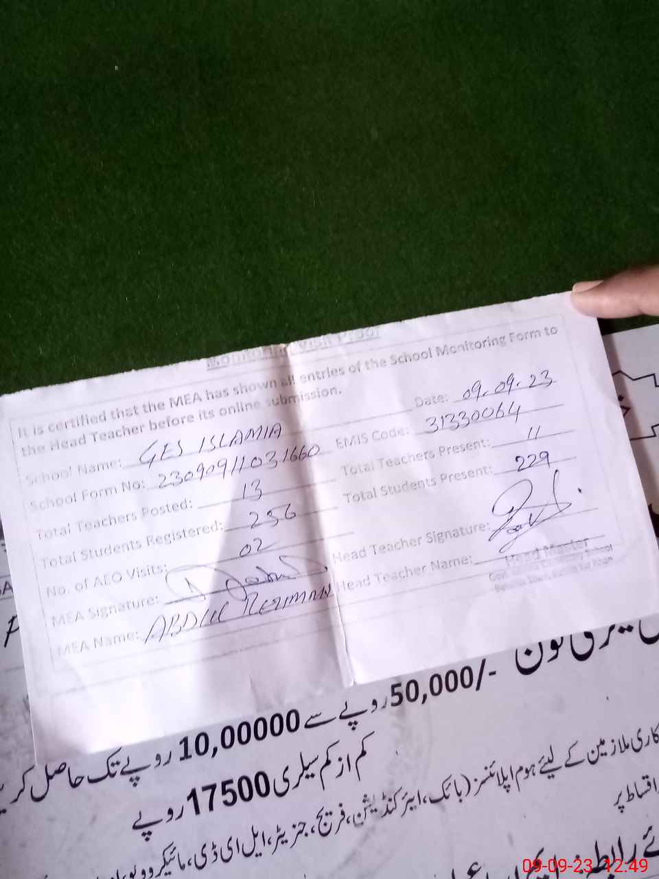 | EMIS Code: 31330064 | Name of School: GES ISLAMIA ELEMENTARY | |||