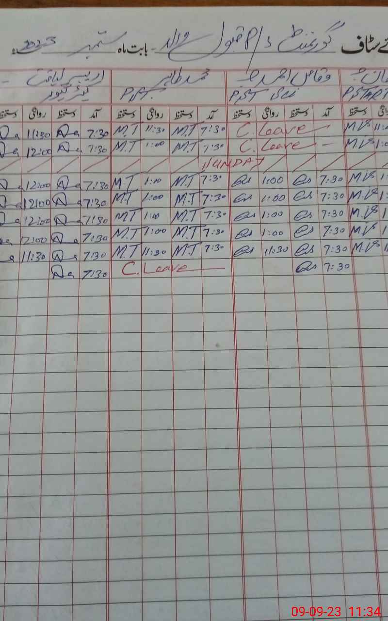 | CNIC | Full Name | Designation | R/C | Absence During Last Calender Month |