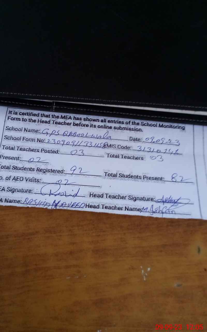 | EMIS Code: 31310146 | Name of School: GPS QABOOL WALA | |||