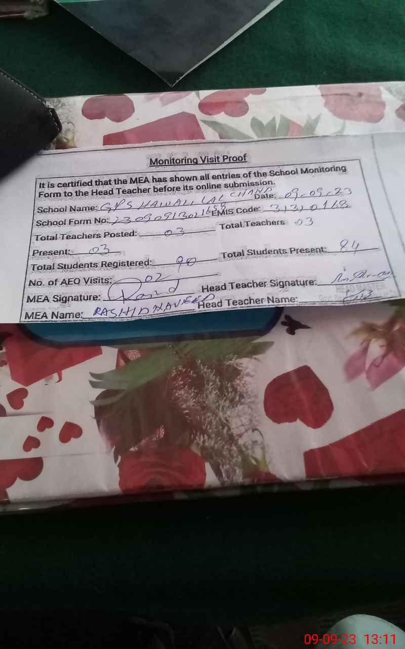| EMIS Code: 31310168 | Name of School: GPS HAWALI LAL CHAND | |||