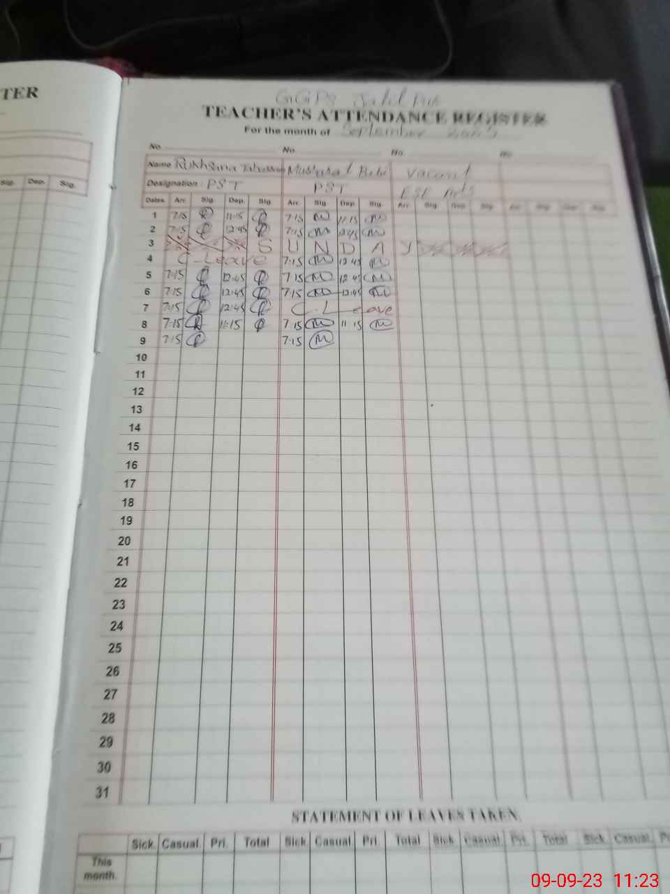 | Name: RU**** TA**** Designation: (School Headmaster's/Headmistress's) ESE(ARTS) Phone/Cell Number: 03**** |