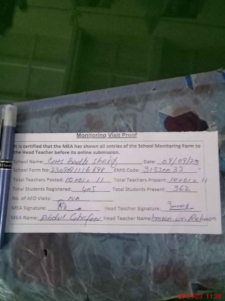 | EMIS Code: 31330033 | Name of School: GHS BADLI SHARIF | |||