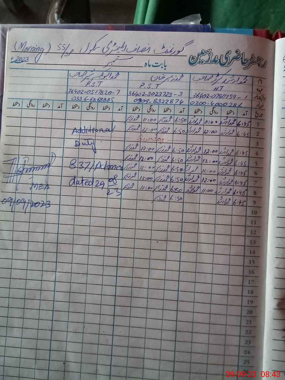 | Name: Mu**** Ar**** Designation: (School Headmaster's/Headmistress's) PST Phone/Cell Number: 03**** |