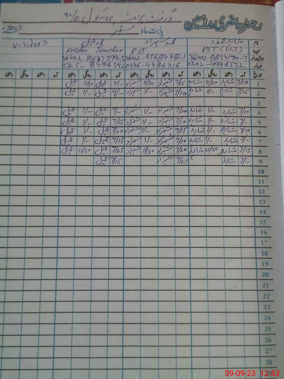 | Name: SH**** ME**** Designation: (School Headmaster's/Headmistress's) PST Phone/Cell Number: 03**** |