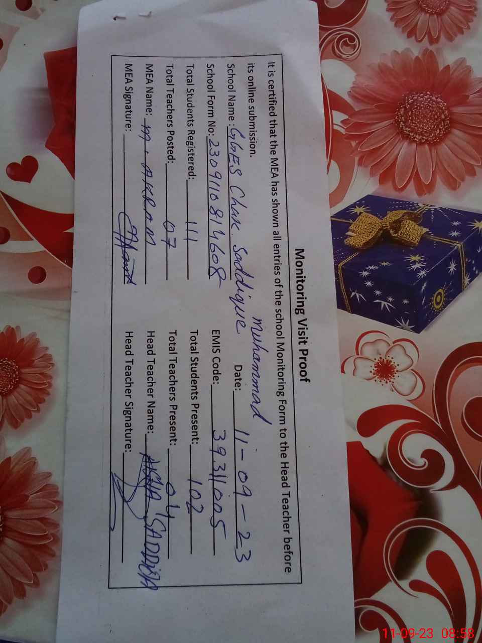 | EMIS Code: 39311005 | Name of School: GGES CHAK MIAN MUHAMMAD SIDDIQUE | |||