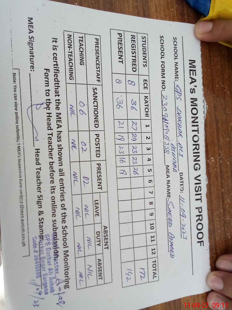 | EMIS Code: 36410198 | Name of School: GPS DARBAR ALI ASHAB, P/O MOUZA JAHAN PUR, KABIRWALA | |||