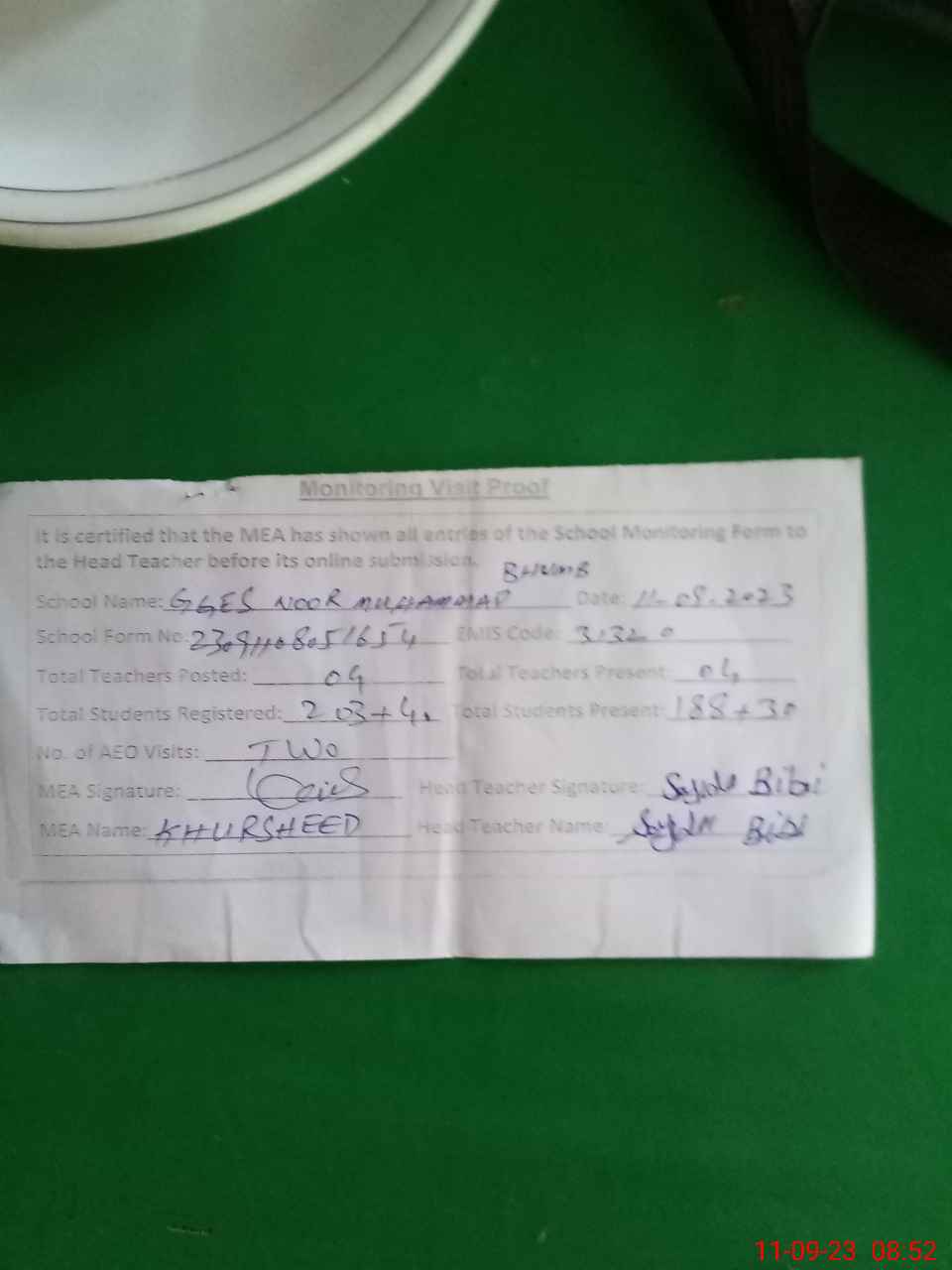 | EMIS Code: 31321028 | Name of School: GGPS NOOR AHMED BHOMB | |||