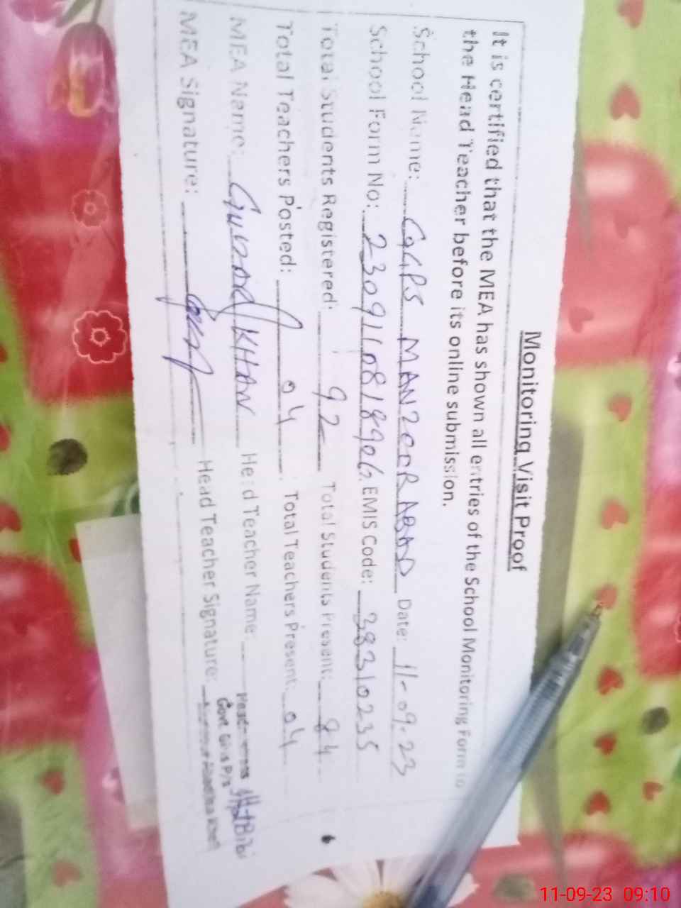| EMIS Code: 38310235 | Name of School: GGPS MANZOOR ABAD ISA KHEL | |||